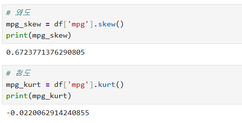 - 왜도(skew), 첨도(kurt)