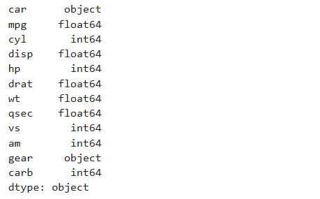 df1 = df1.astype({'cyl':'int', 'gear':'object'})