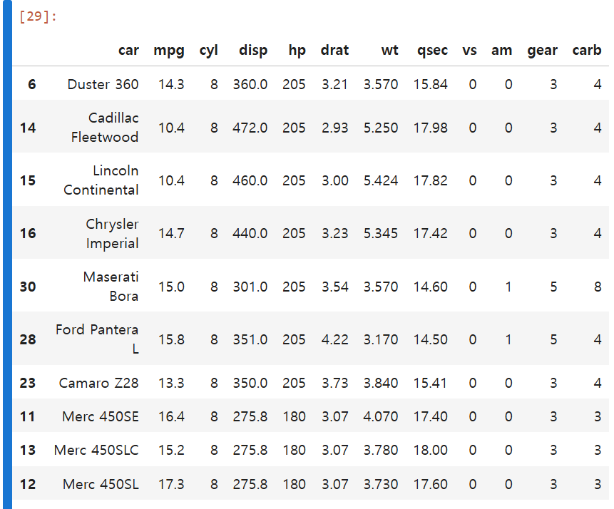 빅데이터분석기사 실기 1유형 | mtcars로 배우는 필터링·정렬·np.where 파이썬 실습