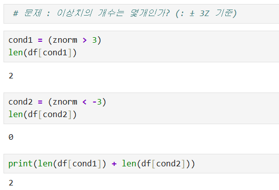 # 문제 : 이상치의 개수는 몇 개인가? (± 3Z 기준)