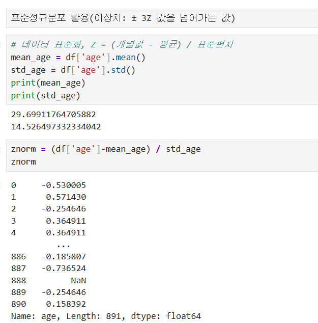 # Z-score 계산: (데이터 - 평균) / 표준편차
